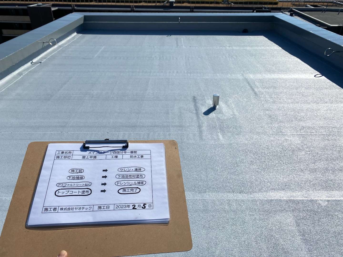 ビル 防水工事 東京都国分寺市西元町 オフィスビル アスファルトシート防水工事 東京都国分寺市西元町にあるオフィスビルのアスファルトシート防水工事を行いました。 1 / 1 前の施工事例 戸建て 東京都江東区塩浜 戸建て 漏水補修工事 次の施工事例 戸建て 埼玉県坂戸市鶴舞 戸建て バルコニー塩ビシート防水工事(長尺シート新設)